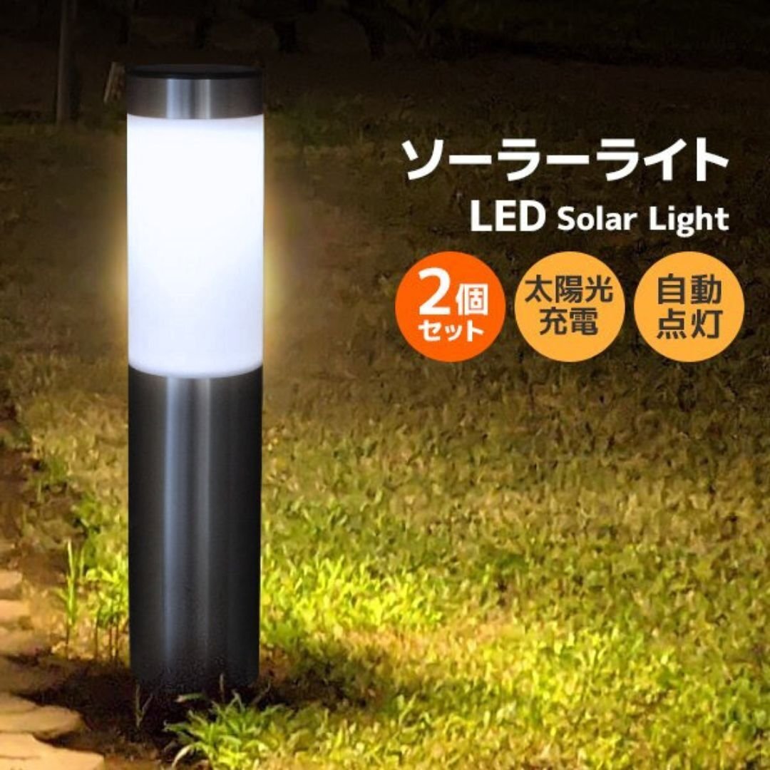 - 【2個セット】LEDソーラーライト ガーデンライト 昼光色 日本語説明書付 自動点灯 庭園灯 ライトアップ 駐車場 花壇 松明 トーチ おしゃれ
