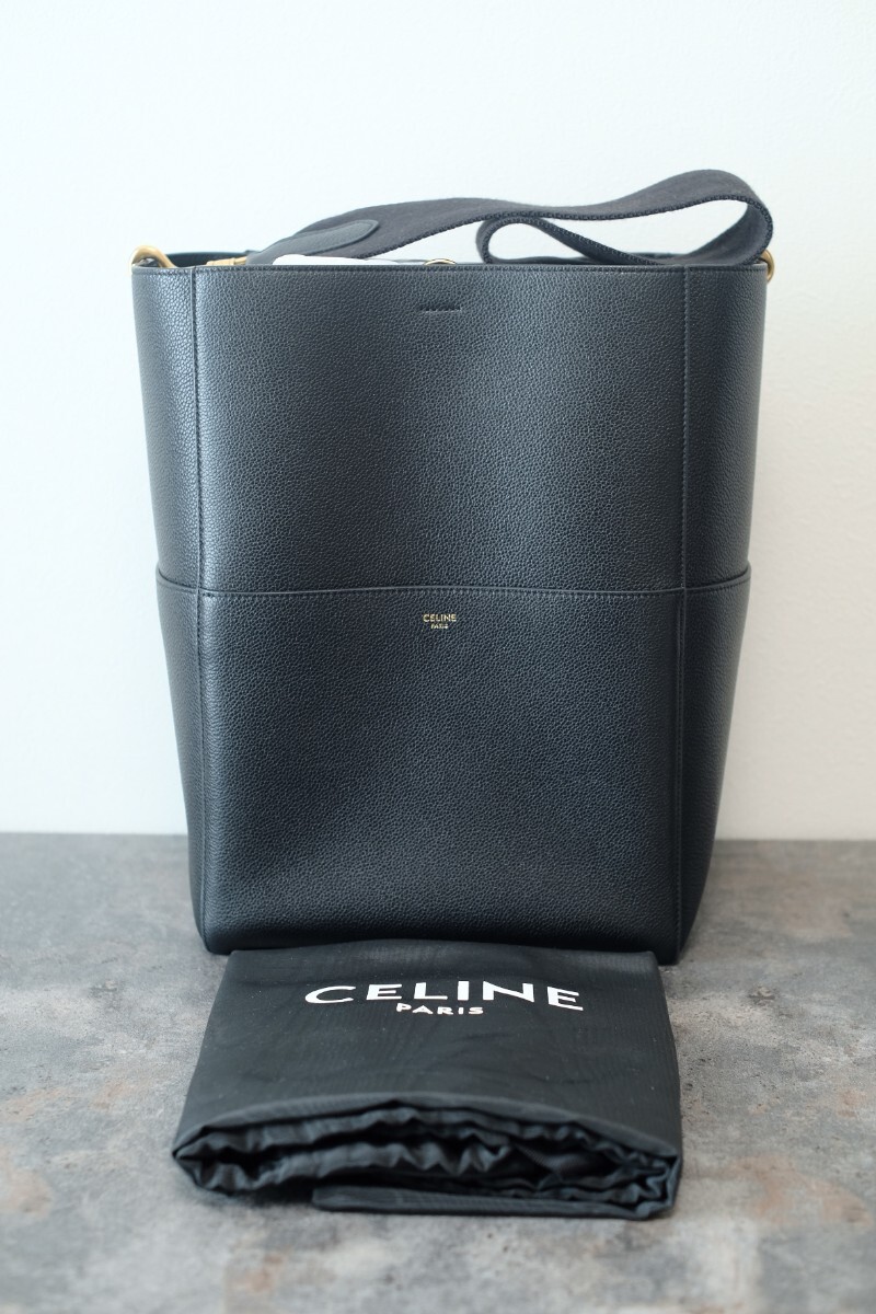 > 【新品未使用】CELINE サングルミディアム ブラック セリーヌ レザーバッグ ショルダーバッグ トートバッグ