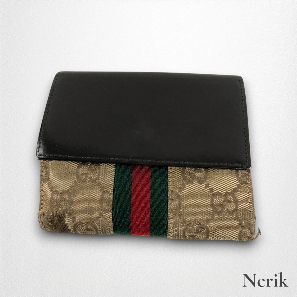 - GUCCI グッチ GGキャンバス シェリーライン 二つ折り財布 ベージュ 高級 ブランド 人気 送料無料!