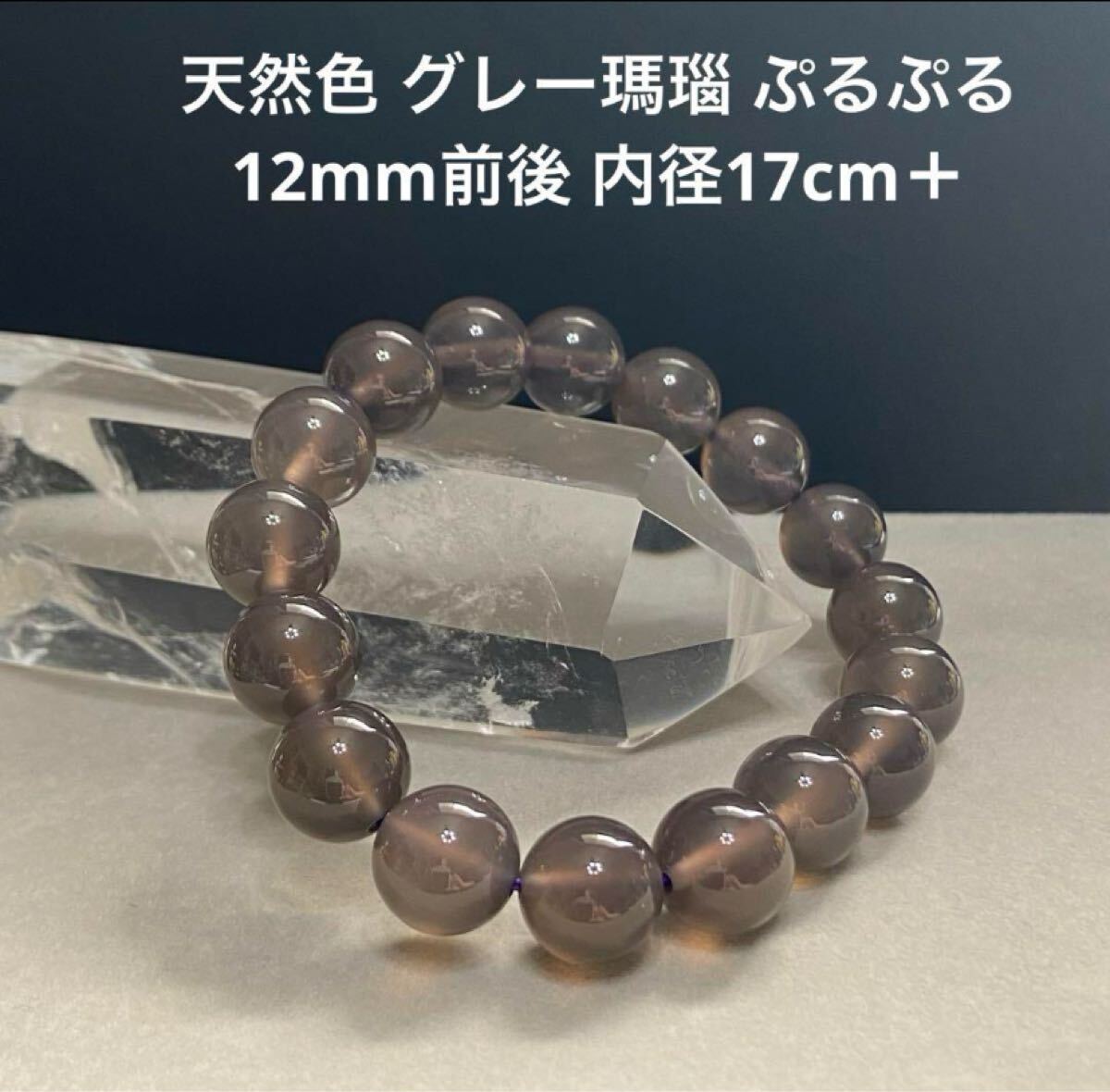 - D980 天然色 グレー瑪瑙 ぷるぷる 12mm前後 内径17cm+