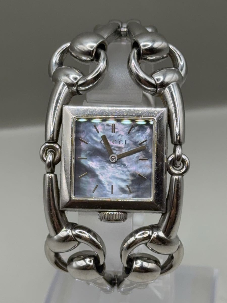 - D1 グッチ シニョーリア 116.3 QZ シェル文字盤 レディース腕時計 電池交換済