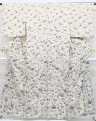 > 《古美術京松》【着物】小紋 絵羽柄 流水に菊文 身丈約159cm 裄丈約64cm kyo7z05-327