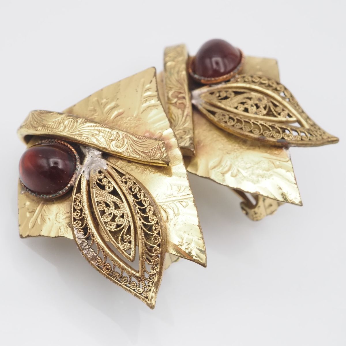 - G096 ファブリス FABRICE イヤリング ガーネット風 フィリグリー 銀線細工 ゴールド デザイン