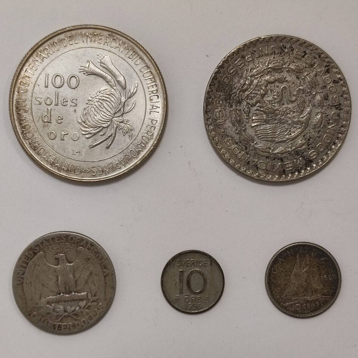 - 5枚セット★世界の銀貨 まとめ アメリカ/カナダ/メキシコ/ペルー/スウェーデン