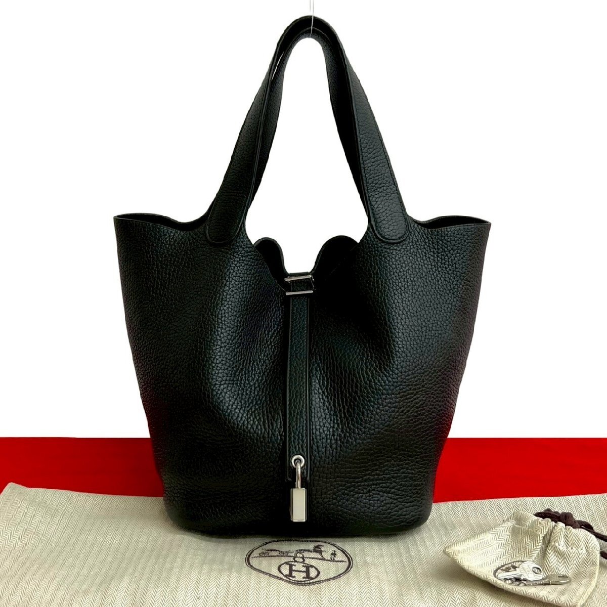 - 極 美品 袋付 C 刻印 HERMES エルメス ピコタンロック MM トリヨンクレマンス レザー ハンドバッグ トートバッグ ブラック 622-2