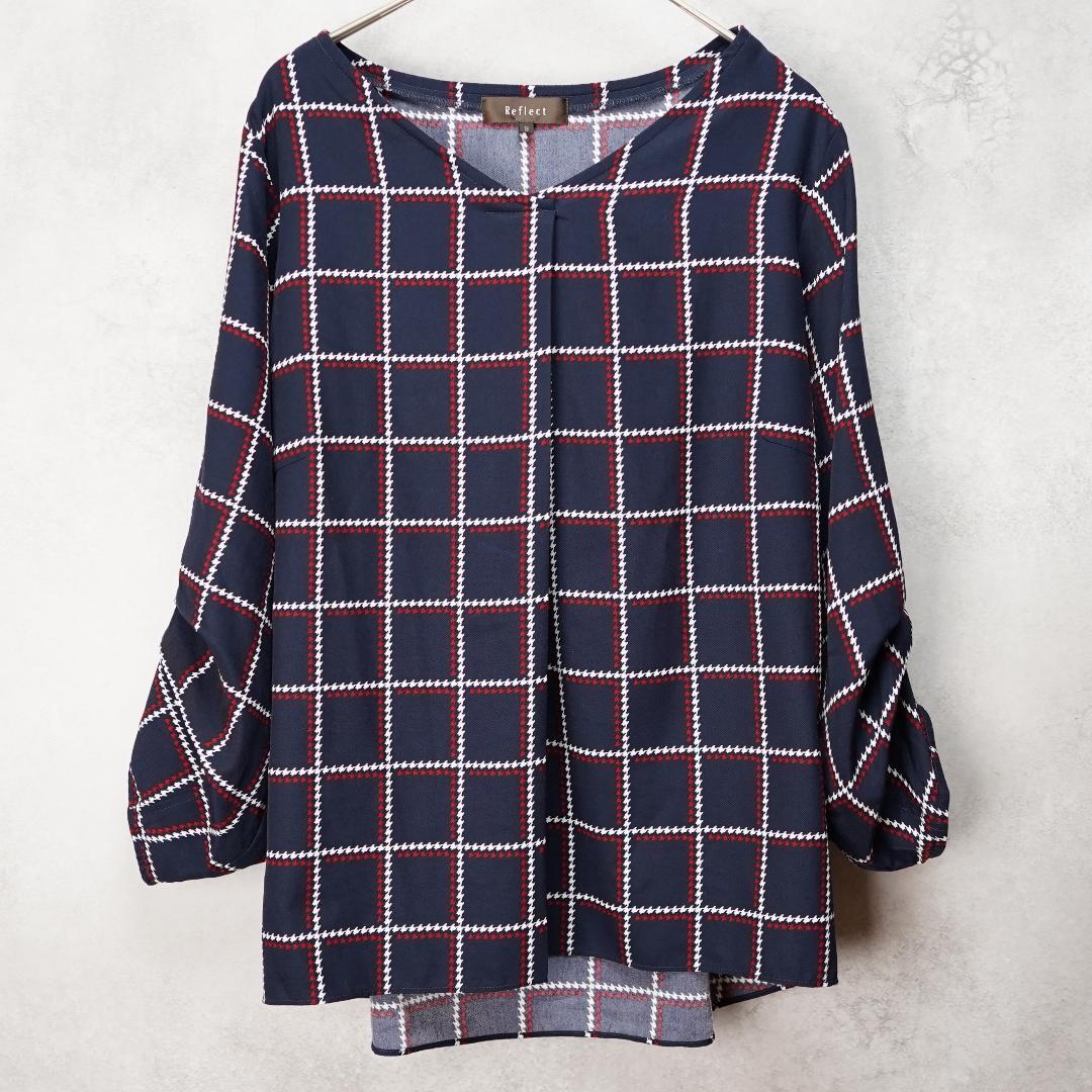 - Reflect トップス ネイビー #9 ポリエステル 長袖 チェック柄