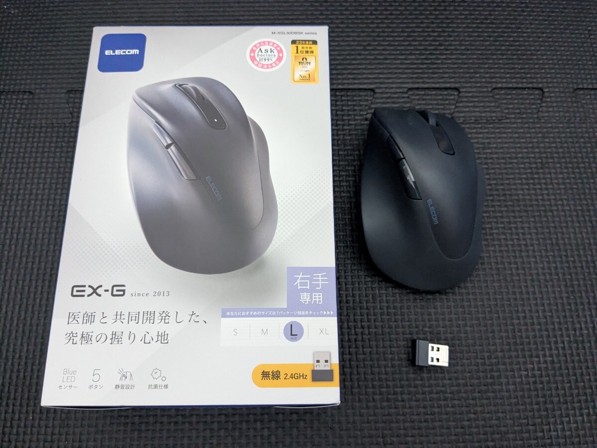 > ◎0710u0927 エレコム マウス ワイヤレスマウス EX-G 無線2.4GHz 静音 Lサイズ 5ボタン 抗菌 ブラック M-XGL30DBSKBK