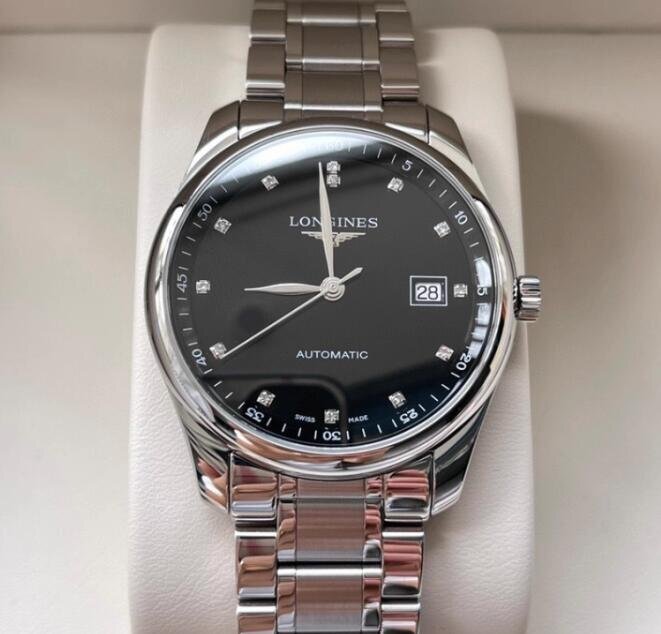 > Longines ロンジン 自動巻き 腕時計 ダイヤモンド ブラックダイヤル メンズウォッチ 黒文字盤 L2.793.4.57.6