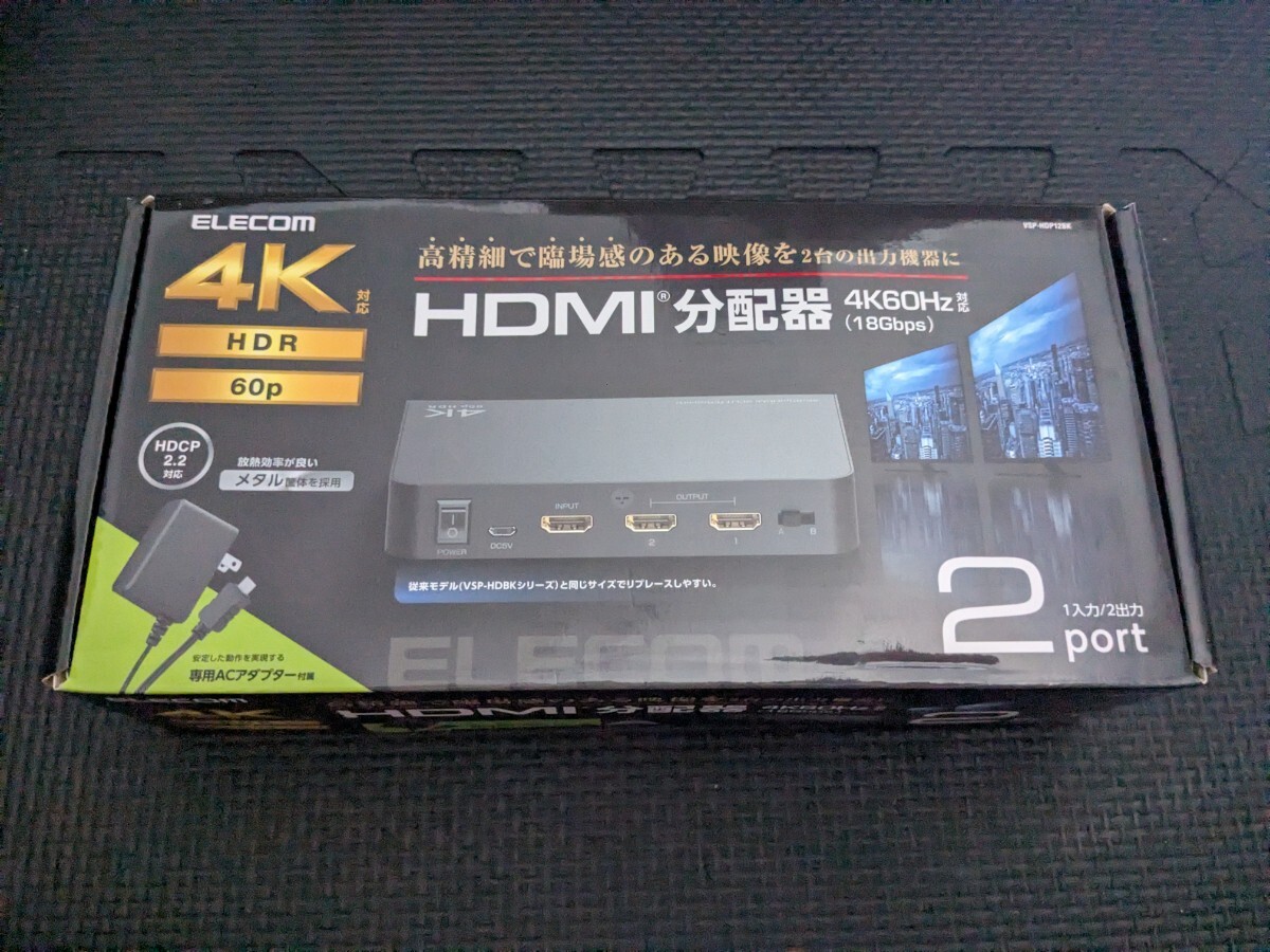 - ◎0710u0938 エレコム HDMI分配器 4K 60Hz(18Gbps) 1入力 2出力 HDCP2.2対応 VSP-HDP12BK