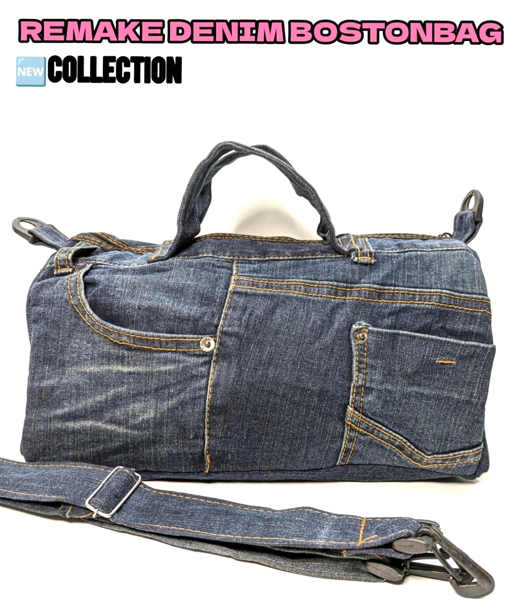 - 新品未使用 タウンボストンバッグ リメイク デニムmb-105【送料無料中】