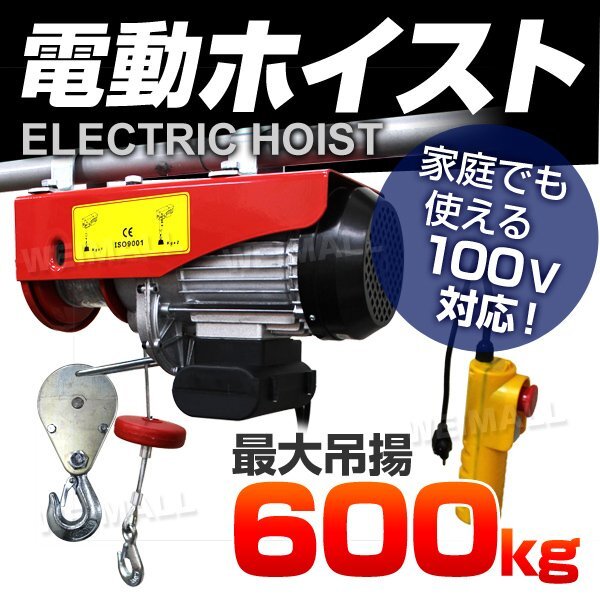 - 新品未使用 電動ホイスト 100V 最大600kg コントローラー付き 簡単設置 クレーン ホイスト ウインチ 吊り上げ 吊り下げ 倉庫 業務 家庭用