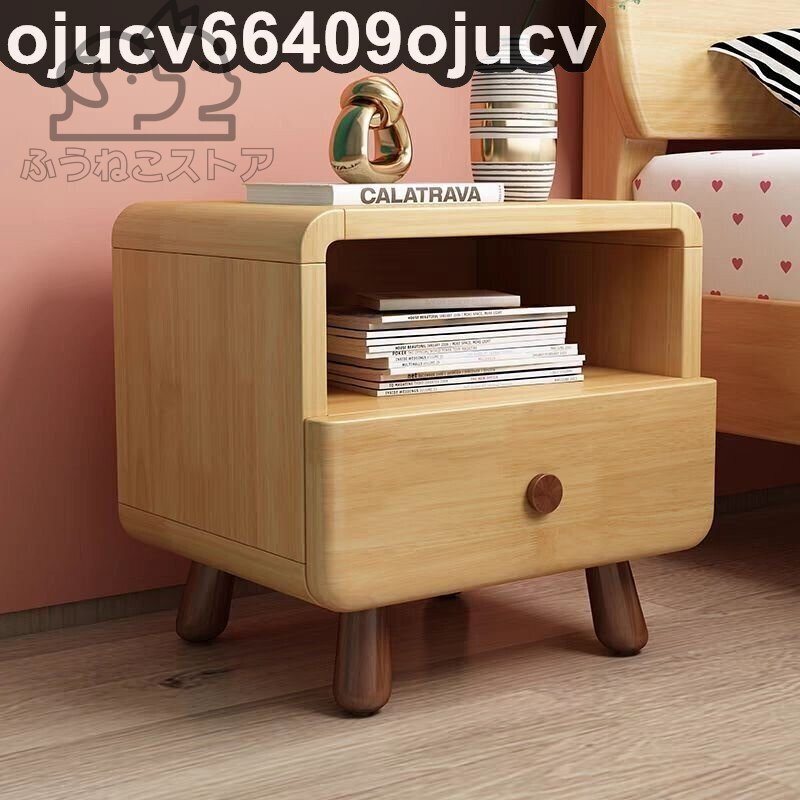 > ナイトテーブル ベッドサイドテーブル 耐久性 引き出し2つ付 オーク 天然木 木製 無垢材 ナチュラル素材 組み立てが簡単