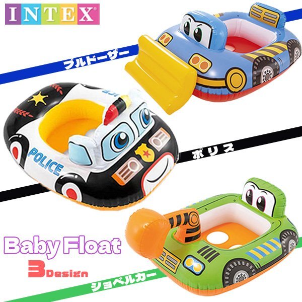 - 送料無料 ベビー用 フロート ブルドーザー青 ショベルカー緑 ポリス かっこいい 乗り物 浮き輪 のりものボート ベビー 赤ちゃん