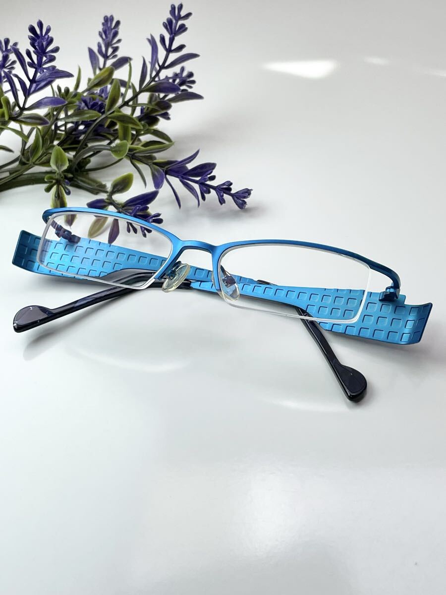 - 希少 KAMURO tegola カムロ ハーフリム ライトブルー 眼鏡 良品