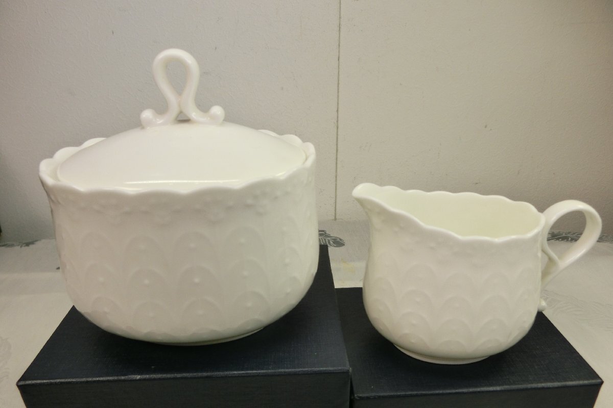 - ♪新品 未使用品★ NARUMI Bone China/ナルミ ボーンチャイナ★シルキーホワイトシュガー入れ&クリーマー