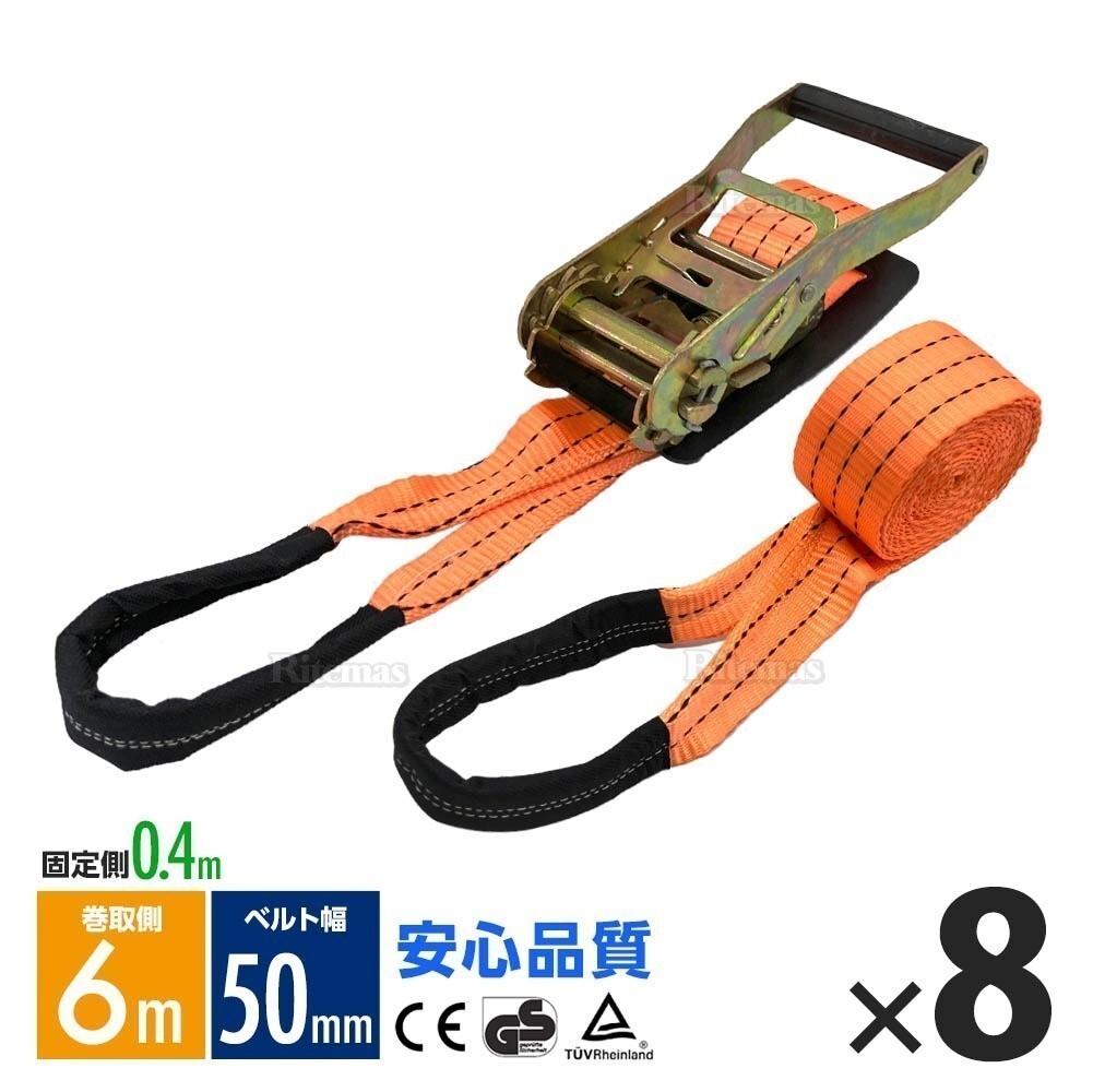 - ラッシングベルト ワッカ トラック用 幅 50mm ラチェットベルト ラチェット式 固定側0.4m 巻側6m 荷重2000kg タイダウンベルト 8本 1年保証