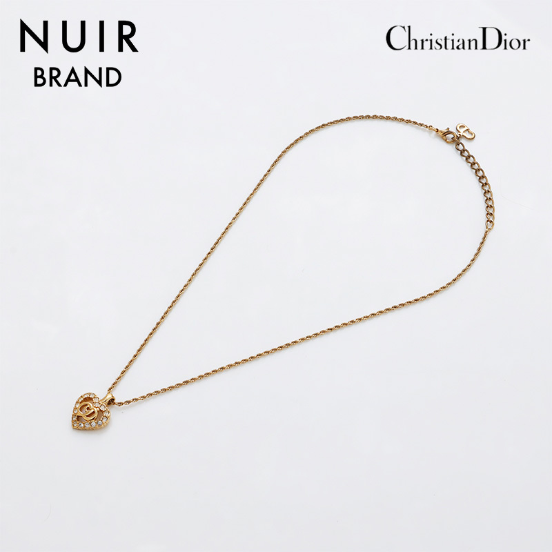 - 極美品 クリスチャンディオール Christian Dior CD ロゴ ラインストーン ハート ヴィンテージ ネックレス ゴールド WS9151
