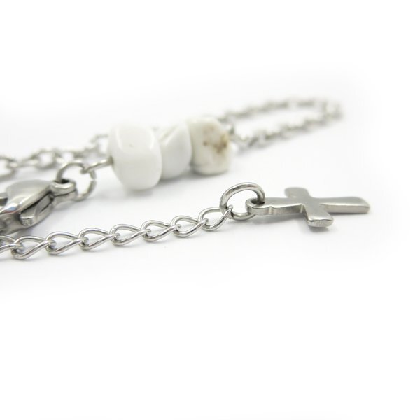- ステンレスチェーンブレスレット ホワイトハウライト付き 全長約20cm(17+3cmアジャスター)