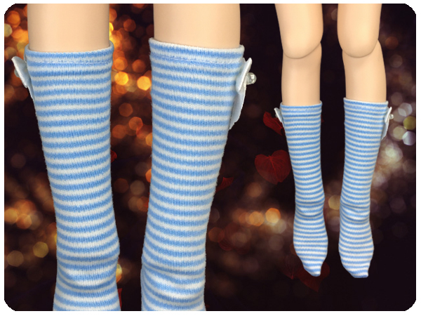 - ●ドール用ハイソックス*リボン付き*水色ボーダー●1/4・50㎝ドールサイズ(MDDやMSD,オビツ50など)のドールソックスに!●