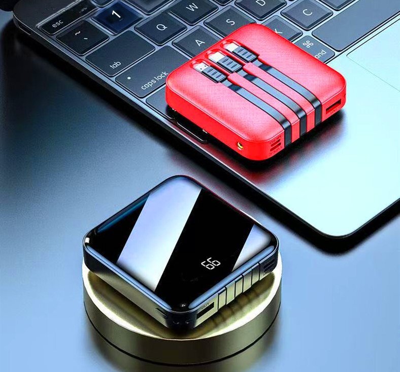- 充電ケーブル付き 20000mAh大容量 ケーブル内蔵 モバイルバッテリー PSE認証 4台同時充電可