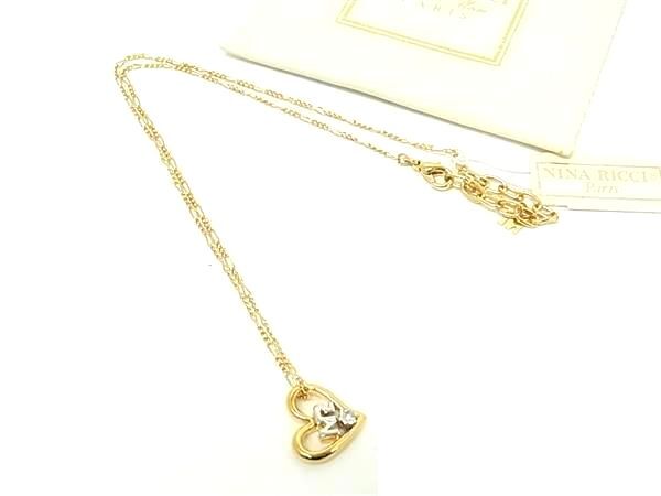 > ■新品同様■ NINA RICCI ニナリッチ ハート ラインストーン ネックレス ペンダント アクセサリー レディース ゴールド系 DK4658