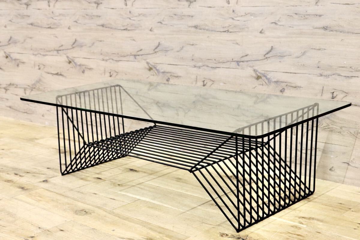 - GMIH258○ARTE JAPAN / アルテジャパン インザルーム ガラステーブル センターテーブル ローテーブル ワイヤーベース スタイリッシュモダン