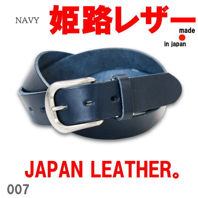 - ネイビー 007 姫路レザー ベルト 35mm 日本製 本革 栃木レザー好きにも JAPAN LEATHER