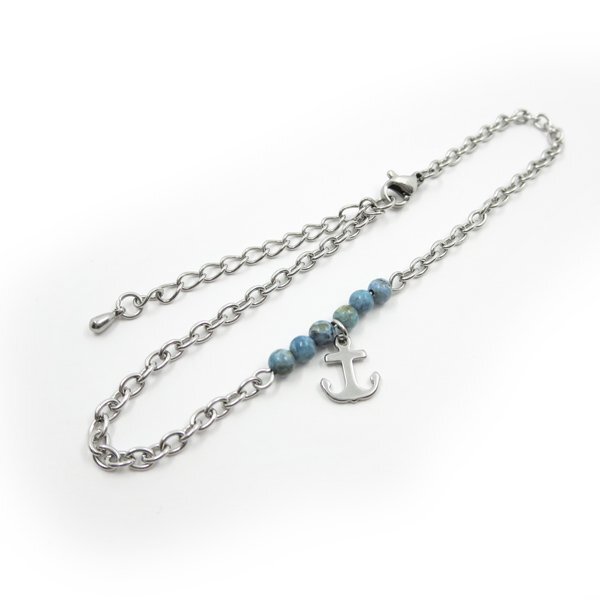 - ステンレスチェーンアンクレット アパタイト チャーム付き 3mm幅小豆チェーン 27cm(23cm+4cmアジャスター)