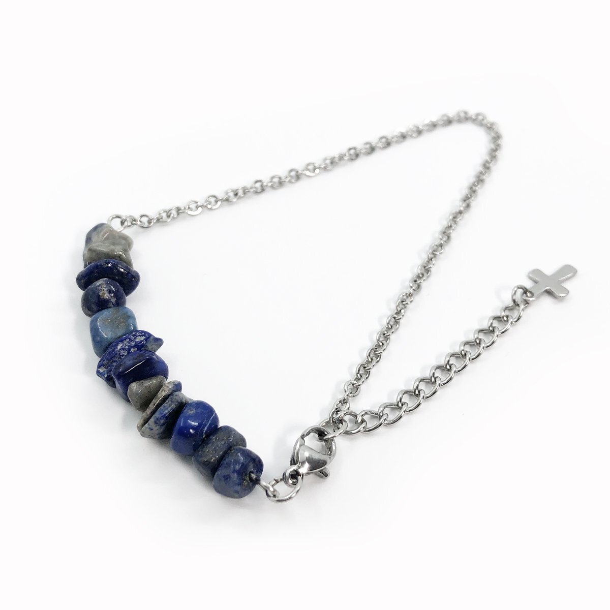 - ステンレスチェーン アンクレット ラピスラズリ 平小豆チェーン幅約2.5mm 27cm(23cm+4cmアジャスター) GN37