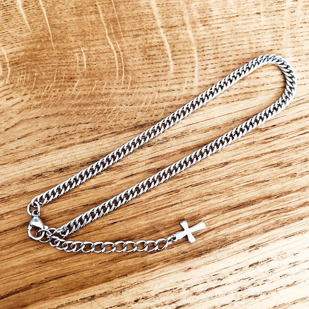 - ステンレスチェーンアンクレット 4.3mm幅 ダブル喜平4面カット 26cm(22cm+4cmアジャスター)