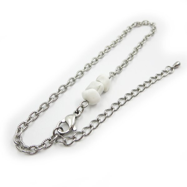 - ステンレスチェーンアンクレット ホワイトハウライト付き 27cm(23cm+4cmアジャスター)