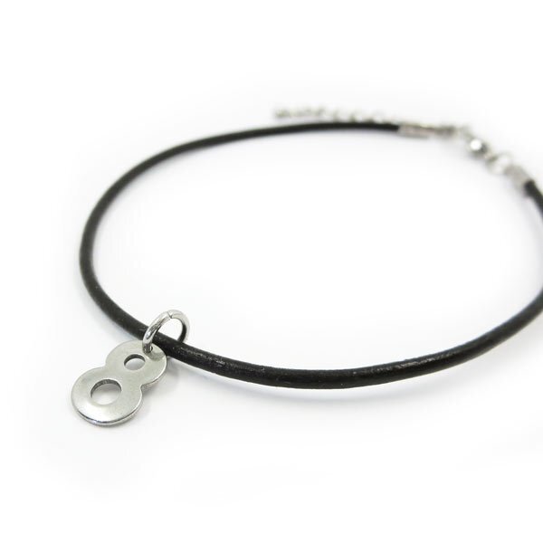 - 8 レザーアンクレット ナンバーチャーム付き ステンレス金具 25cm(21+4cmアジャスター)