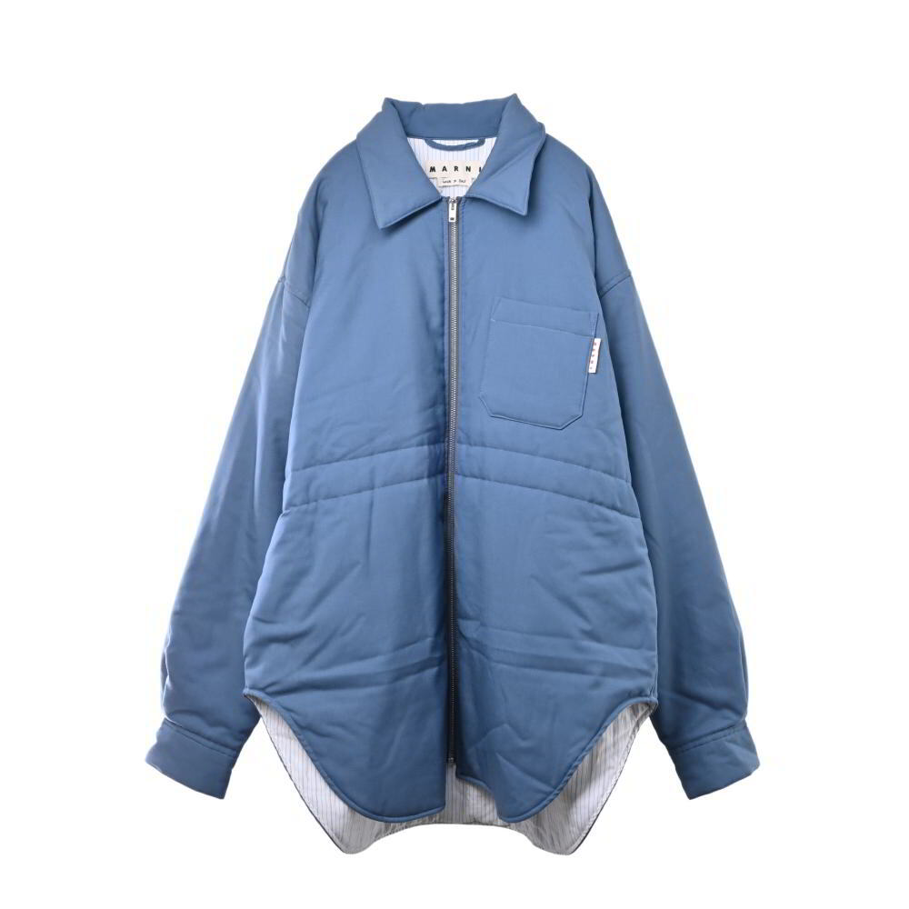- 美品 MARNI ウール ソリッド パデット シャツ シルエット ブルゾン 48 ブルー マルニ KL4BCUBC55