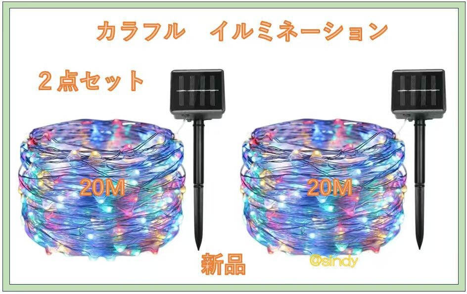 - 2個セット カラフル【好評】ソーラー充電 イルミネーションライト 200球x2 (20M) x2 ソーラーライト 8モード 防水