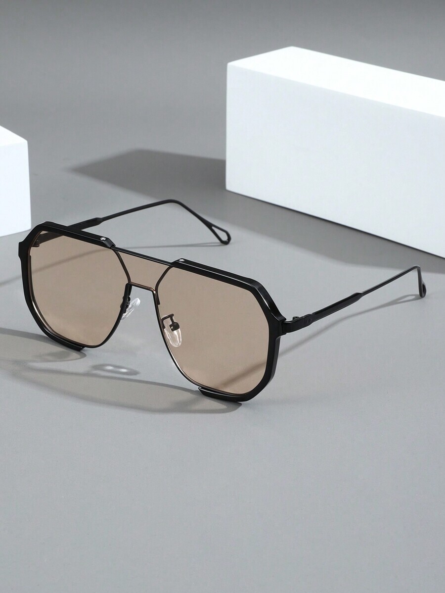 - アクセサリー メンズ アイアクセサリー 1個 メンズ新ファッション双眼ブリッジ一体型眼鏡、韓国風シック ビッグフレーム装飾レンズフ
