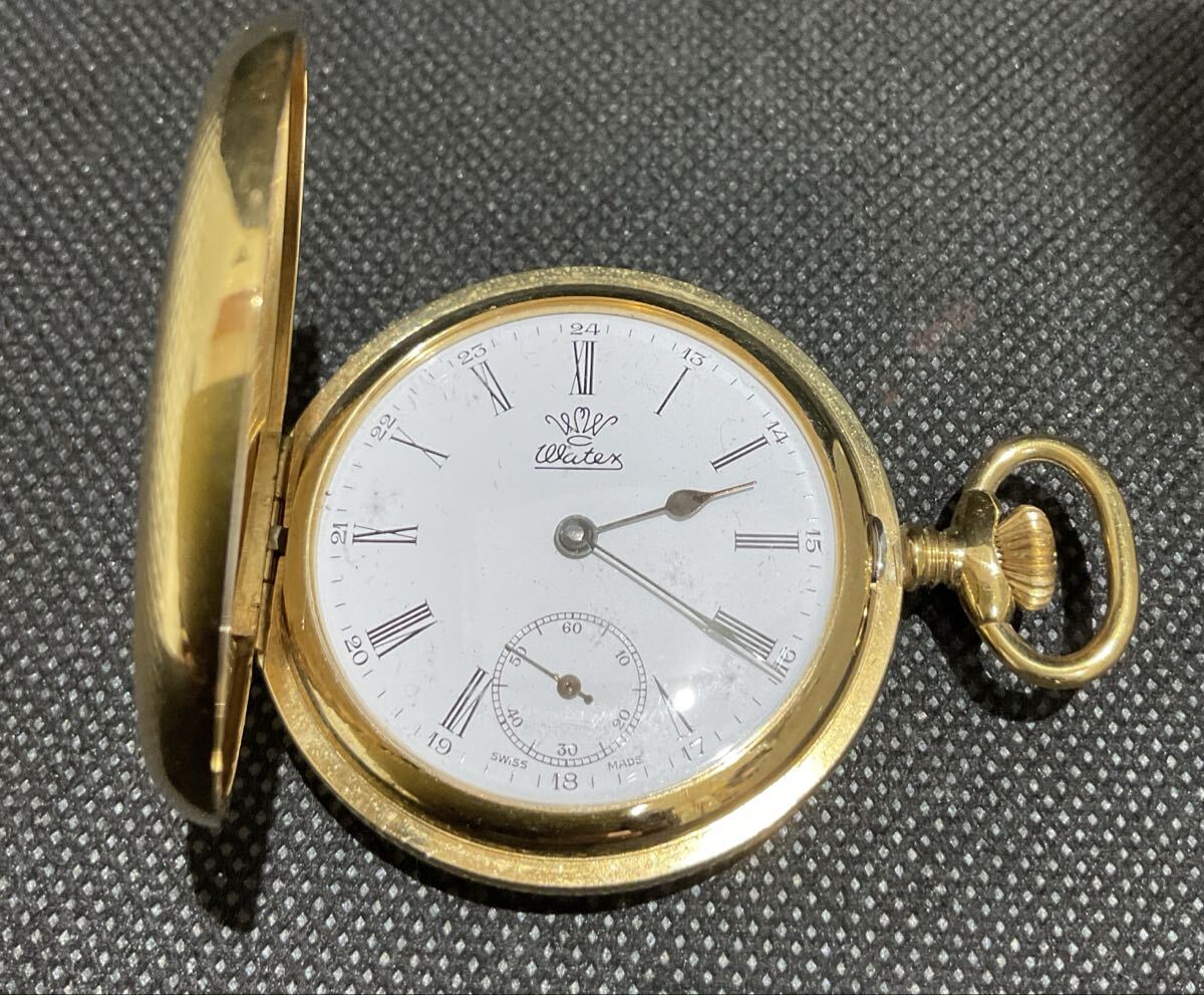 - 【P-3141】 Watex ワテックス 懐中時計 手巻き アンティーク ゴールドカラー 白文字盤 スイス製 WATEX
