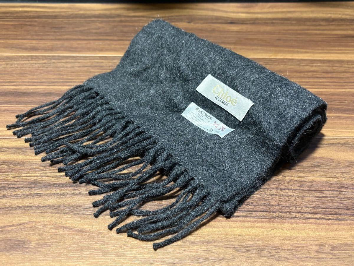 > 【中古品】Chloe クロエ カシミヤ100 マフラー グレー 無地 約幅20×長さ146cm ブランド 冬物 ファッション 【管R204-2510】