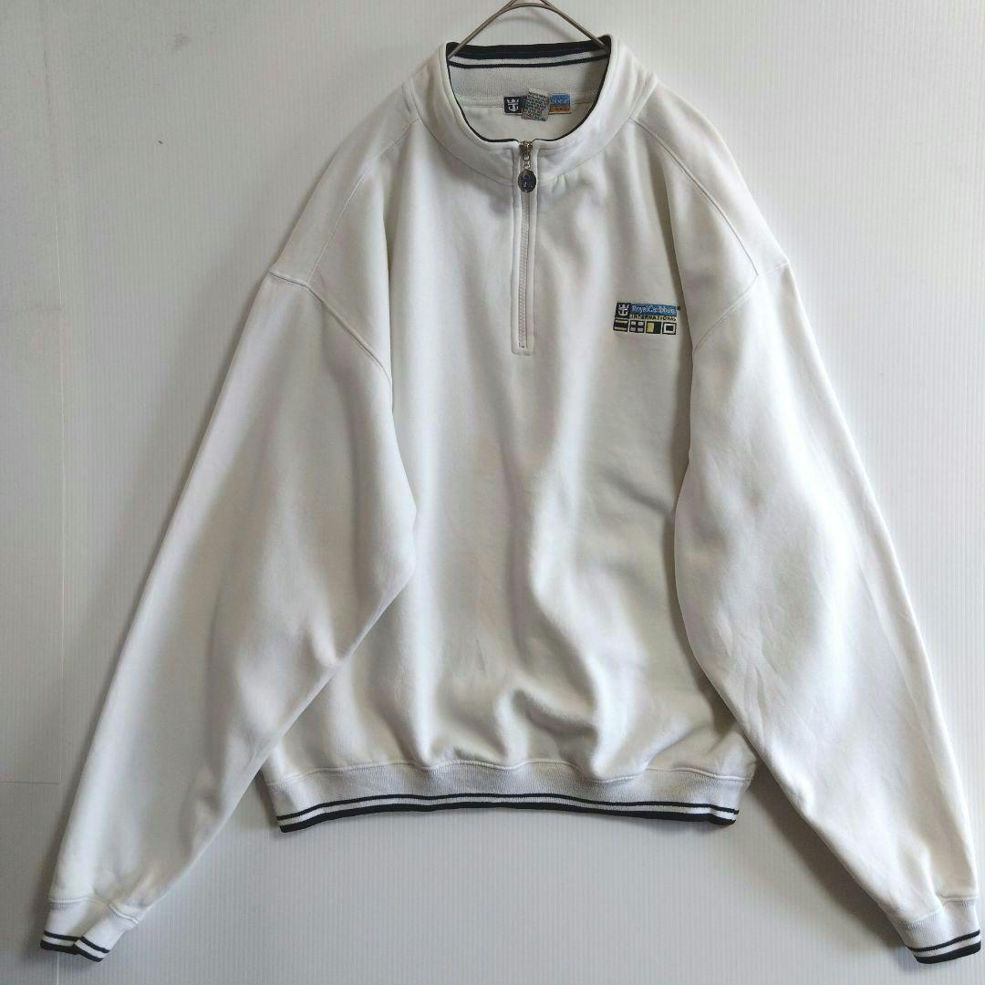 - A877 RoyalCaribbean ハーフジップトレーナ XL 白 US古着 ビックサイズ