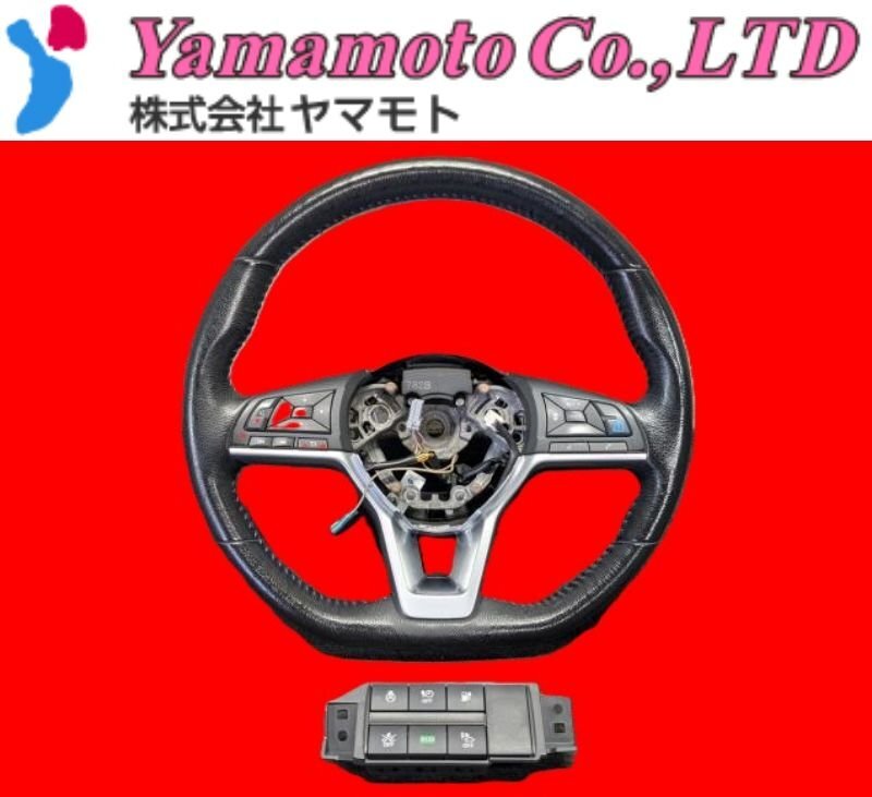 > [Z2501-A6]ZE1 リーフ 純正 ステアリング ハンドル レザー 革巻き リモコン スイッチ 青ステッチ ステアリングヒーター付