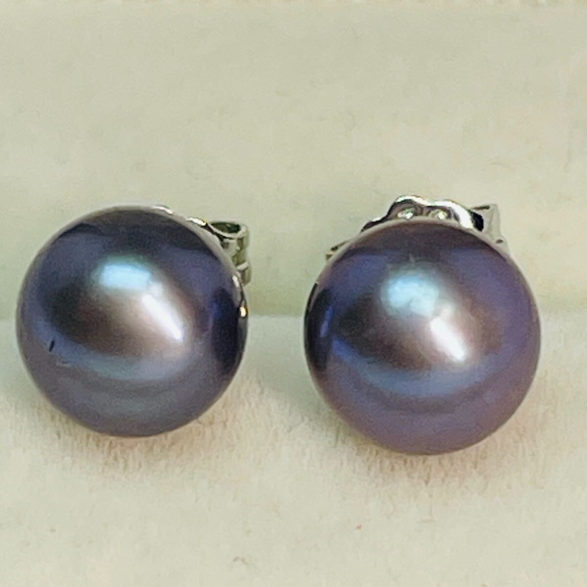 - 本真珠 ピアス 黒真珠 パール 7-8mm直結 照り良く 発色抜群 冠婚葬祭 大粒 jewelry ジュエリー