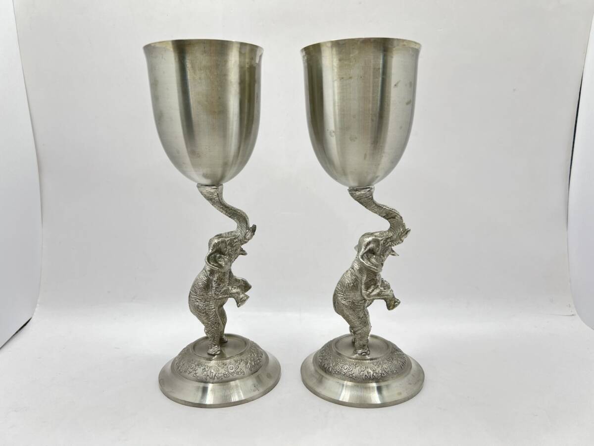 - B) 錫製 ワイングラス 象 2客セット タイ ピューター TIN97% 7J1006