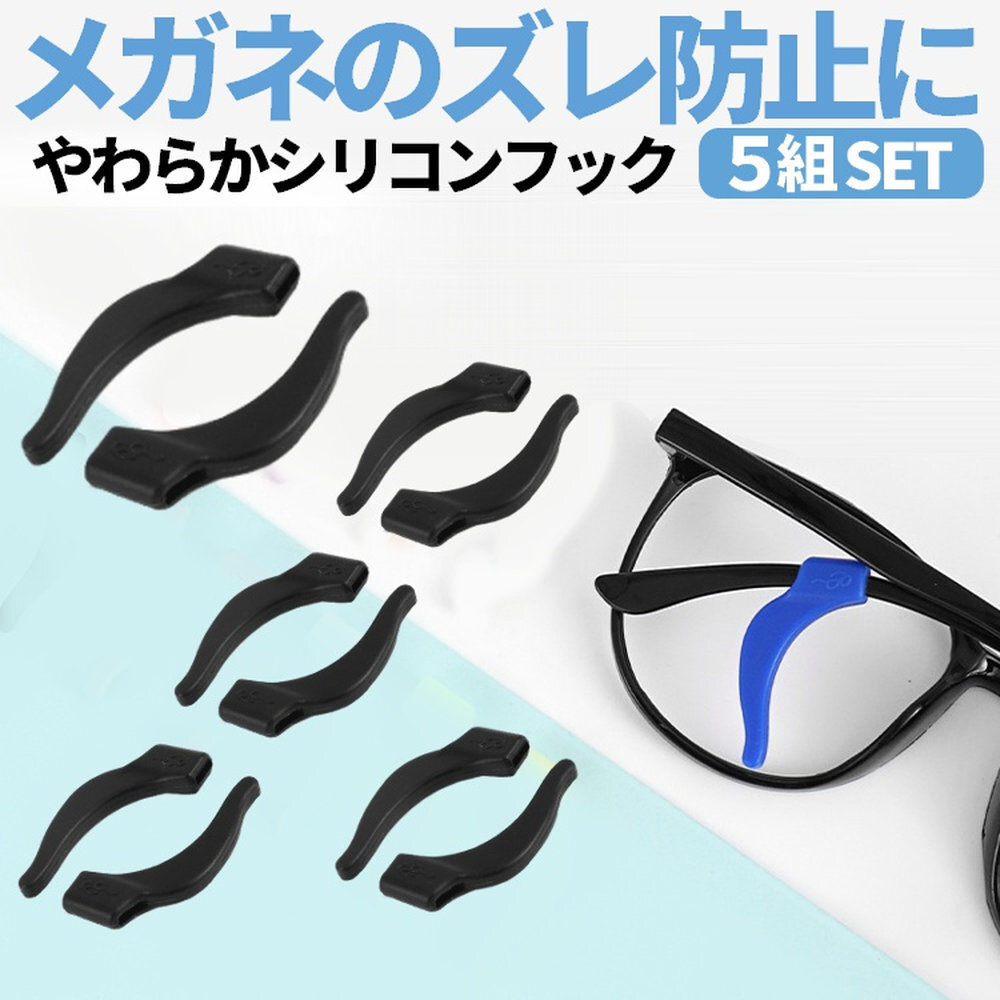 > メガネズレ防止 5組セット イヤーフック 眼鏡固定 シリコン 柔らか滑り止め カーブ形状 快適 耳の痛み軽減 汎用 GWET098S5