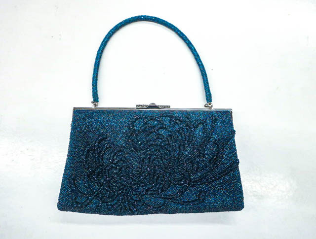 - 《京都一輝堂》【着物】アンティーク 和装小物 ビーズバッグ 菊文 24w-5923