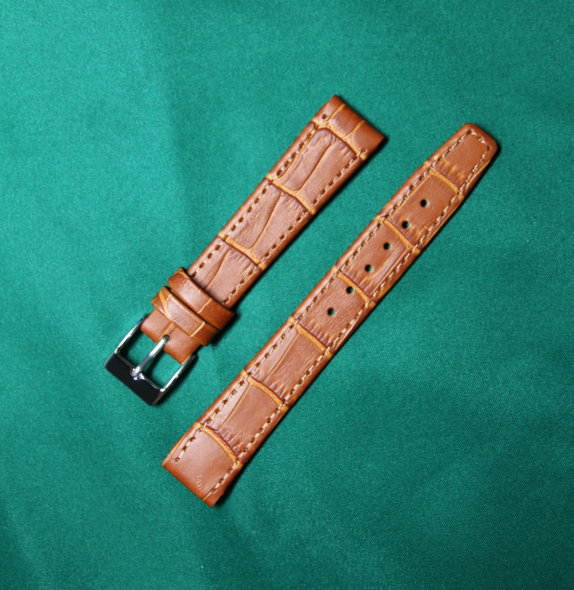 - 16㎜ オープンエンド 固定ラグ 茶・ブラウン アリゲーター/ワニ型押 イタリアンカーフ SS銀色尾錠 ワイヤーラグ用 fixed lug 新品