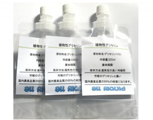 - 送料無料(国産) (VG)植物性グリセリン 990ml (330ml×3個入り) 【99%、透明パウチ仕様】 ALL RIQUID