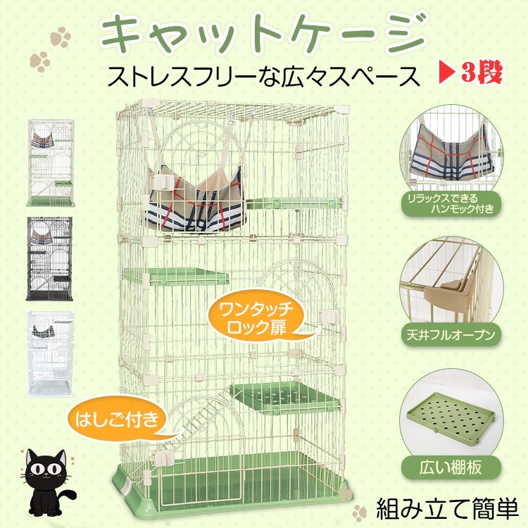 - 送料無料 キャットケージ ペットケージ ハンモック はしご 棚板 ネコ ケージ キャット ネコハウス ペットハウス 3段 ペット用品 猫 pt064