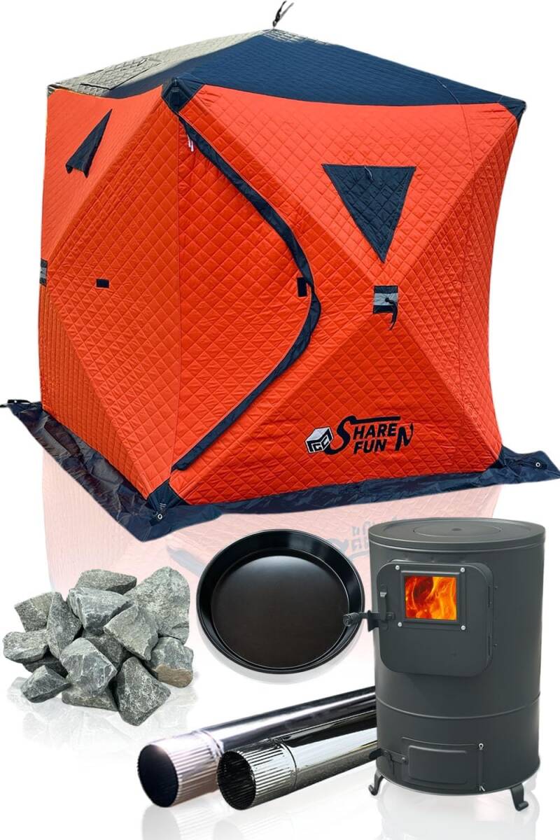 > サウナテント テントサウナ スタートセット 4人用 ロウリュができる 幅240m×奥行240cm×高さ210cm 薪ストーブ ストーン アウトドア