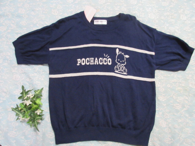 - ☆新品【L】サンリオ☆ポチャコ♪半袖セーター紺☆送料無料