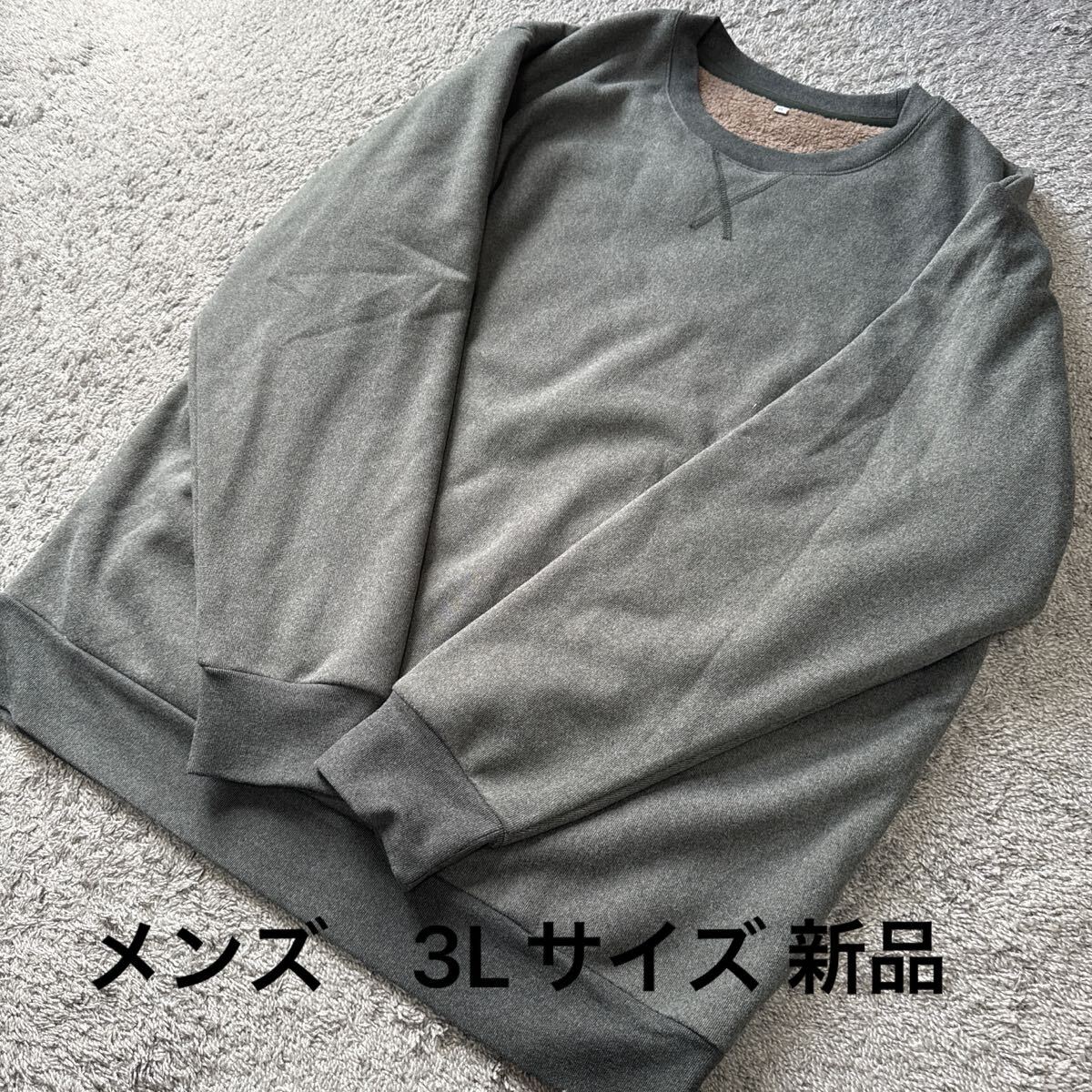 - 大きいサイズ メンズ 内側ボアファーニットトレーナーグレー3L★新品23