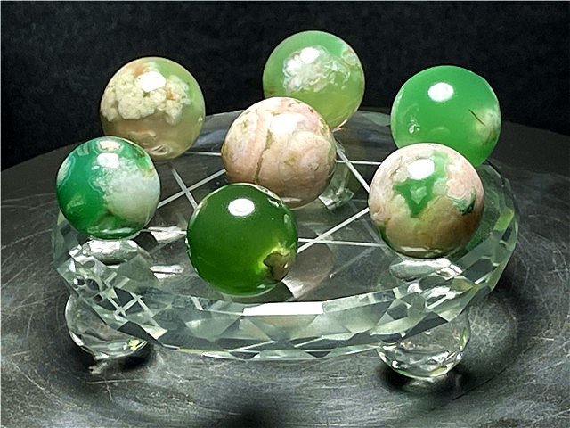 超綺麗☆天然グリーン桜花アゲート(メノウ 瑪瑙)丸玉七星陣187Y7-24Y01b
